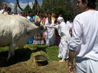 You will be happy to hear that on 04/16/2009 there was a beautiful Go-Puja and Giriraja Govardhan Anakuta Maha Mahotsava performed in New Braja Dham headed by Srimati Uma Didi.