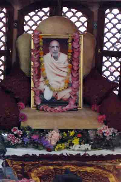After the sankalpa, the parikrama party proceeded to Sri Radha-Damodara temple, where a puspa samadhi was constructed for Srila Gurudeva by the deep desire of Dvija Krsna dasa, Sripad Sridhar Maharaja and Jagganath Punja from Fiji. Jagganath Punja kindly funded the site for Srila Gurudeva's Samadhi, and Sripad Sridhar Maharaja and Dvija Krsna dasa made all the arrangements. The puspa samadhi spot is directly across from the samadhi of Srila Jiva Gosvami. Srila Krsnadasa Kaviraja Gosvami's samadhi is also next to Srila Jiva Gosvami.