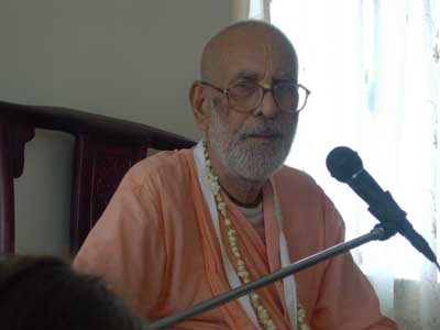 On the morning of July 1st Srila Narayana Maharaja went to the bhakti-yoga temple called Sri Vinoda-bihari Gaudiya Matha. The devotees performed the foot-bathing ceremony and arati guru-puja, and then Srila Narayana Maharaja called on a few senior devotees to speak before he spoke about the real meaning of yoga.