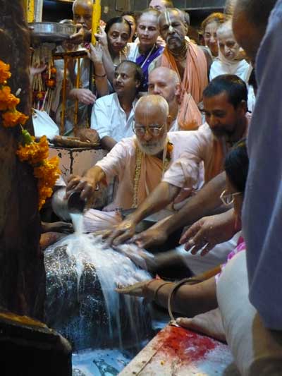 After celebrating Janmastami (the appearance day of Sri Krsna), Nandotsava (the birthday celebration of Krsna in Vrndavana), and the appearance day of Srila Prabhupada Bhaktivedanta Swami Maharaja, Srila Bhaktivedanta Narayana Gosvami Maharaja went to his Giridhari Gaudiya Matha in Govardhana, where he stayed until Radhastami (the birthday of Srimati Radhika). There, the traditional one-week explanation of Srimad-Bhagavatam (Bhagavat-saptaha) took place from September 7-14.
