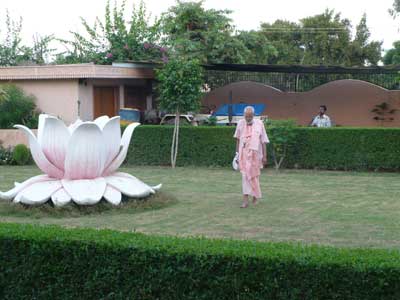 Bhajanas began at 3:30 pm., after which Sripad Tirtha Maharaja began speaking about the pastimes narrated in Srimad-Bhagavatam. Srila Narayana Maharaja did his japa-walk in the garden from about 5:30 until 6:00pm and then entered the temple at 6:00pm. Sripad Tirtha Maharaja continued to speak about the Bhagavatam, and Sripad Rasananda dasa brahmacari also spoke, and then Srila Narayana Maharaja spoke for about 15 minutes before evening arati began.