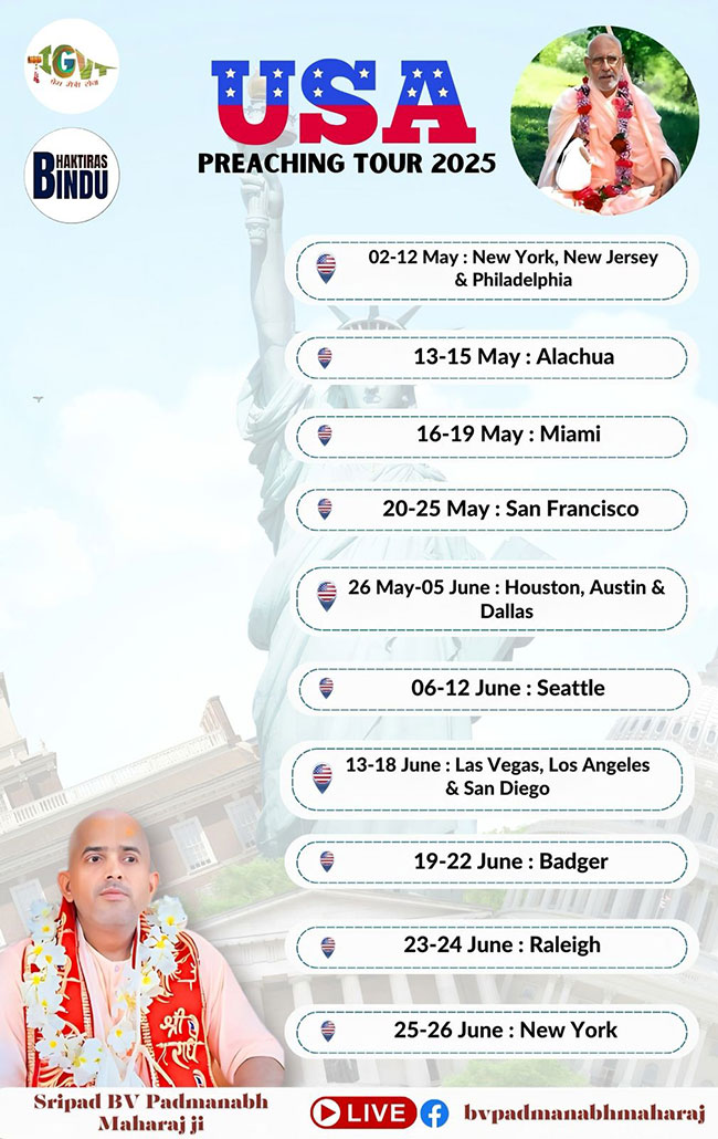 Upon Srila Gurudeva’s instructions he is now devoting most of his time in preaching the message of Srila Gurudeva Sri Srimad Bhaktivedanta Narayan Gosvami Maharaja all over India and world.